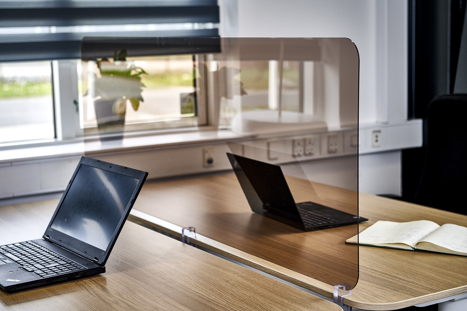 Eksklusiv bordafskærming til afskærmning af skriveborde, receptionsdiske samt andre bordplader hvor man ønsker at afskærme i et åbent og ekslusive udtryk.