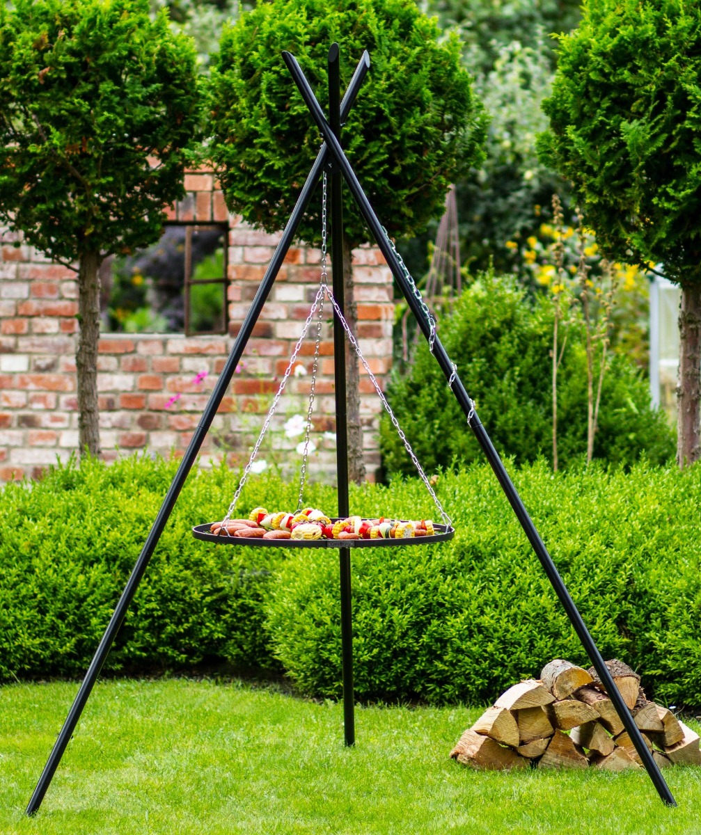 Cook King Tripod har en højde på 210 cm og er det perfekte udstyr til bålmåltider ude i naturen eller i haven.