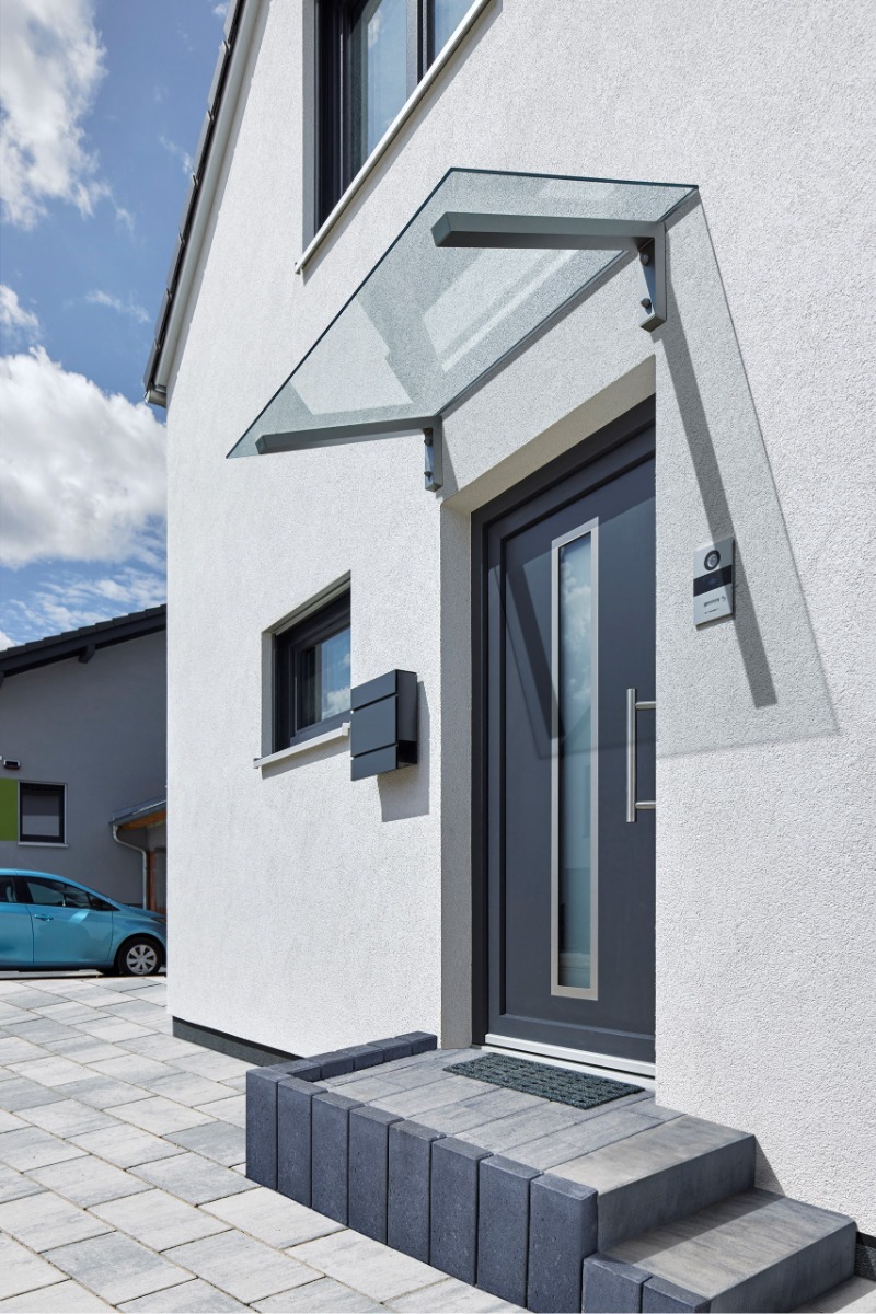 Med sit moderne design og massive tagplade af lamineret sikkerhedsglas giver gop Dørbaldakin Libra ikke kun beskyttelse til din indgangsdør, den tilføjer også et smukt blikfang.