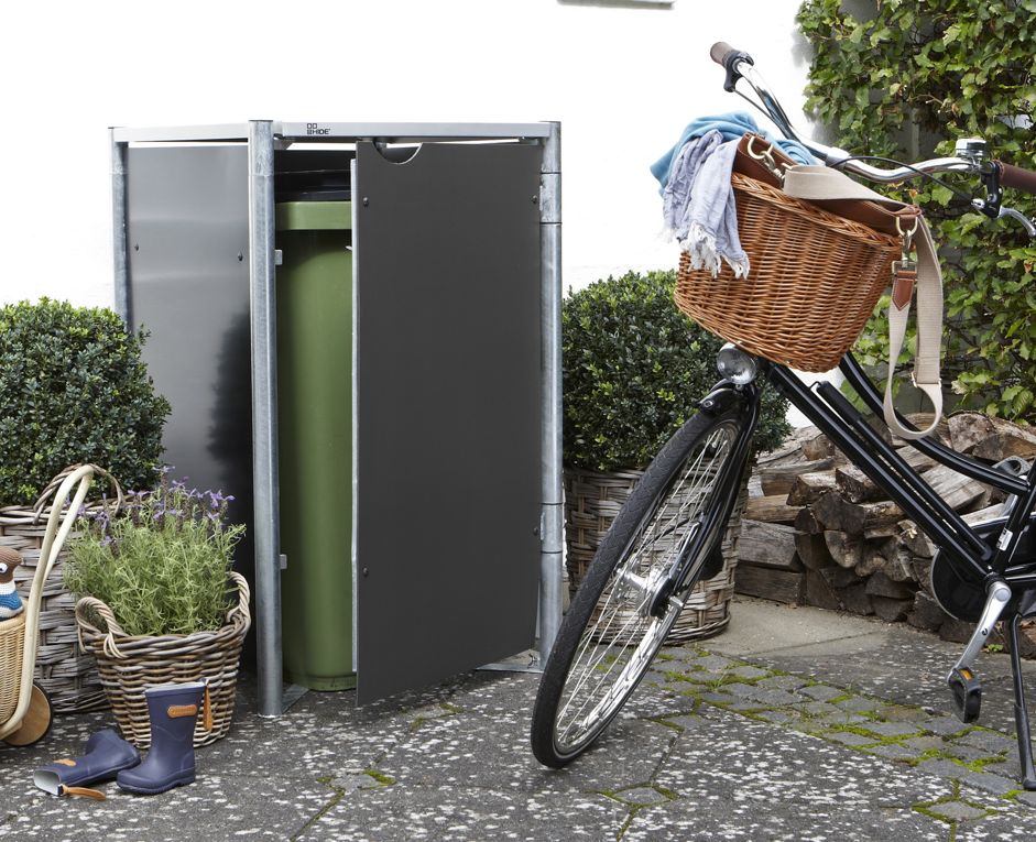 Affaldsskjuleren fra Hide er et stativ, hvori du kan placere den affaldscontainer, du har fået udleveret af din kommune. HIDE skraldespandsskjulere er modulopbyggede, og kan bygges sammen, så man kan få arrangeret flere containere pænt.
