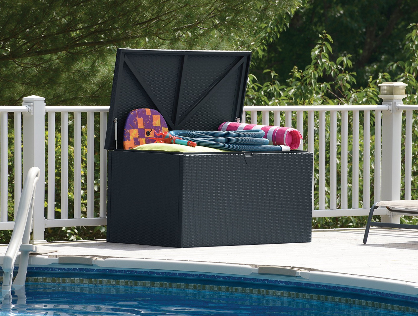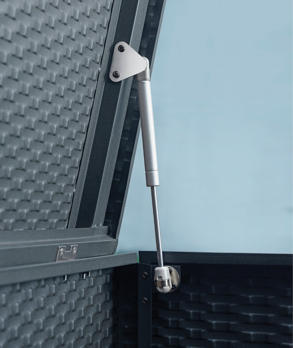 Hyndeboksen er let at åbne. De to gasdæmpere holder låget åbent.