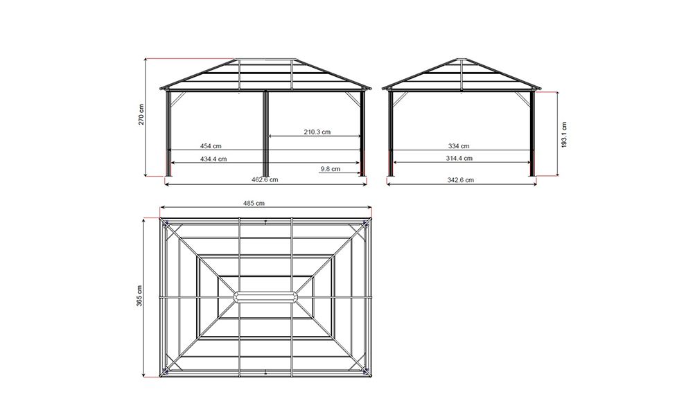 Den massive konstruktion af pulverlakeret aluminium er vejrbestandig, og er modstandsdygtig overfor rust og slidtage. Alle skruer er udført i rustfrit stål. Dette gør at din pergola havepavillon kan stå udendørs hele året rundt.
